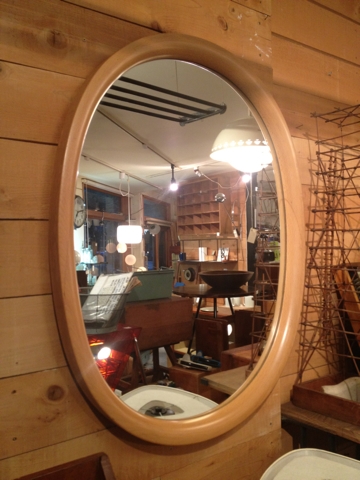 柳宗理氏デザイン、秋田木工製のミラー。少し前に小振りなタイプは復刻されましたが、こちらの大振りサイズは余り見かけません。コンディションも良いです。