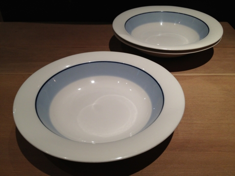 アラビア時代のTeema φ25.5センチ ブルーが二枚、カイフランク作のロングセラー。現行のイッタラの物とは縁のテーパー感が若干異なる気がします。