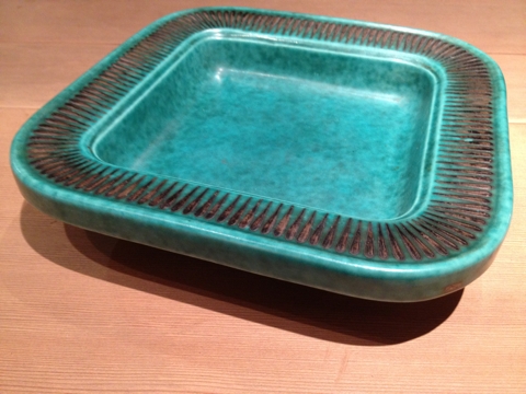 ヴィルヘルム コーゲ作の銀彩が施されたスクエアなボウル、Agentaシリーズより。どっしりと重いです、灰皿かも知れません。21センチ角。Gustavsburg グスタフスベリ製です。30.000- 25.000-