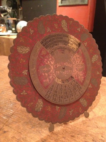 ライオンの後ろは真鍮製の万年カレンダー。素性は調べ切れませんでしたが、1978~2077まで参照オッケー。