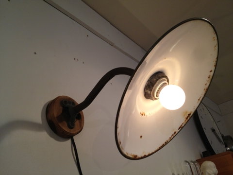 照明をもう一つ。グリーンの琺瑯シェードが着いたブラケットライト。
