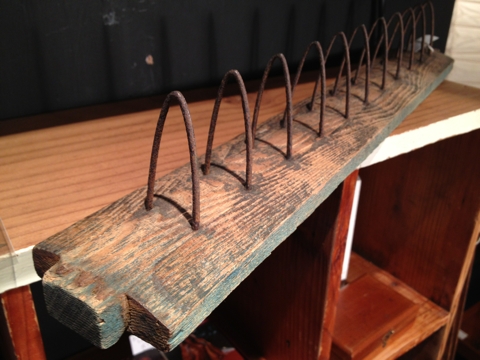 固定した形跡がありますので壁などに付けて鍵でも引っ掛けてたのでしょうか。ペイントは剥げ、意外と確りなアイアンは錆びてます。アイデア次第で見たててください。w/480ミリ