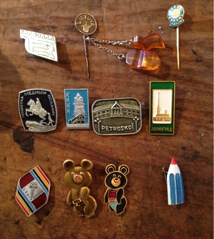 ソ連時代のバッチがわさっと。ミーシャも居るよ!どれでも500円!あ、アクリルの靴?付きはsold