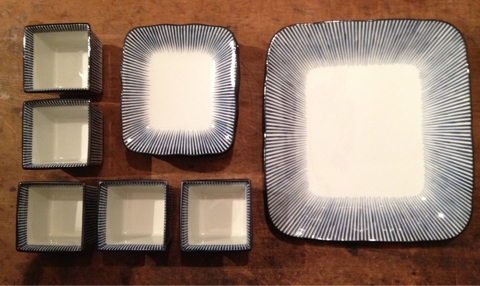 そして出ました皆様、たち吉謹製の通称ジャーンのお皿オールスターズ。特大、中皿、角鉢とデットストックがどどっと。お正月へ向けていかがでしょう。