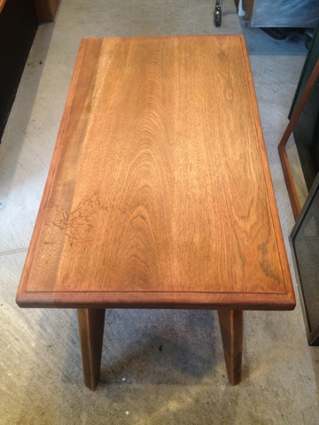 天板の材が堅く重い手触りの良い材質です。全体をサンディングしオイルにて仕上げました。