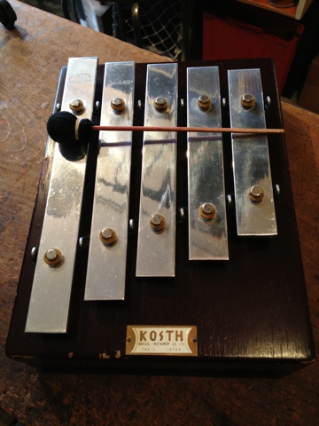 KOSTHという国産メーカー製、4~50年前くらいの物ですが、とても良い響きでお呼び出しいたします。バチは当方にて作成しました。