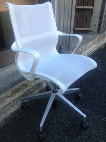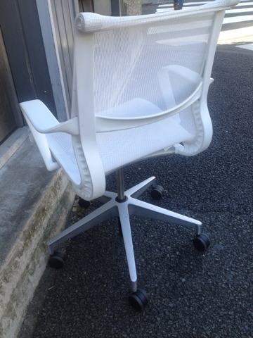 アメリカはハーマンミラー社のアーム付きSETU chair。こちらは現行品です。名品アルミナムを継承したデザインながら最新の樹脂や構造を採用し、操作部は高さ調整のガス圧のみというシンプルかつハイテクなモダンチェアです。アーム部に少々傷が有りますが、総じて良いコンディション勿論ガス圧も問題ありません。