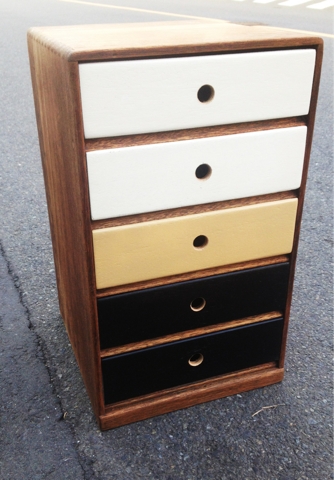 A4オッケーな小引き出し仕上がりました。外装の痛みが目立ったので、リペアを兼ね丸穴を開けたりペイントでちょっと遊んでみました。深めな五杯で収容量もたっぷり!