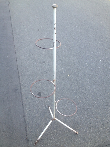 いい感じにヤレておりますプランターラックです。錆びやペイント剥がれなど結構気合入ってますが、意外と確りしております。植物以外でも引っ掛けてディスプレイなんかも面白いですね。