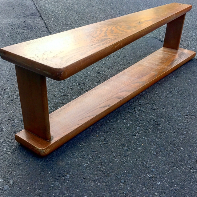 全て無垢材で天地は30?厚と贅沢な造り、板はd/115~205?と台形で上下入れ子のデザインです。塗装は当時の(ラック)ニスのままです。傷やシミなど少々あります。