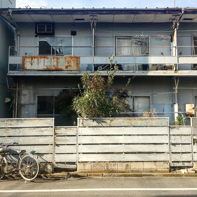 こちら住まいそばの古いアパート。今やだいぶ荒れてますがよく見かける工法ではなく、簡素ながら造りが色々凝っていて庭なんかもある様子。