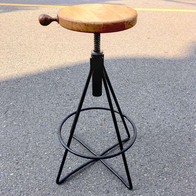座面をオイル仕上げの無垢材へ付け替えアレンジしたハイスツール。