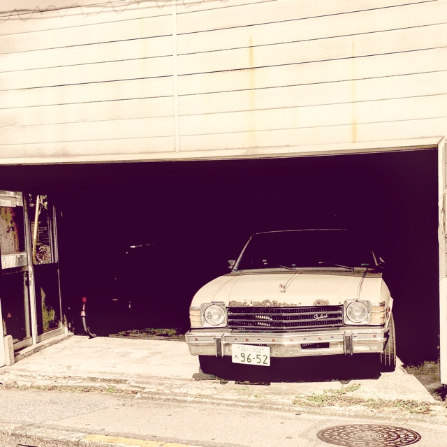 下町大森町辺りガレージのポンコツアメ車。ここだけ時空が歪んでいます。なんかちょっと一世を風靡した鈴木英人氏のイラストぽくなっちゃいました、あの方のイラストも夏が似合いました。
