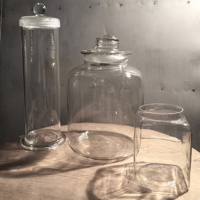 新入荷のガラス容れ物三種。どれも1960年代辺りの物でしょう。