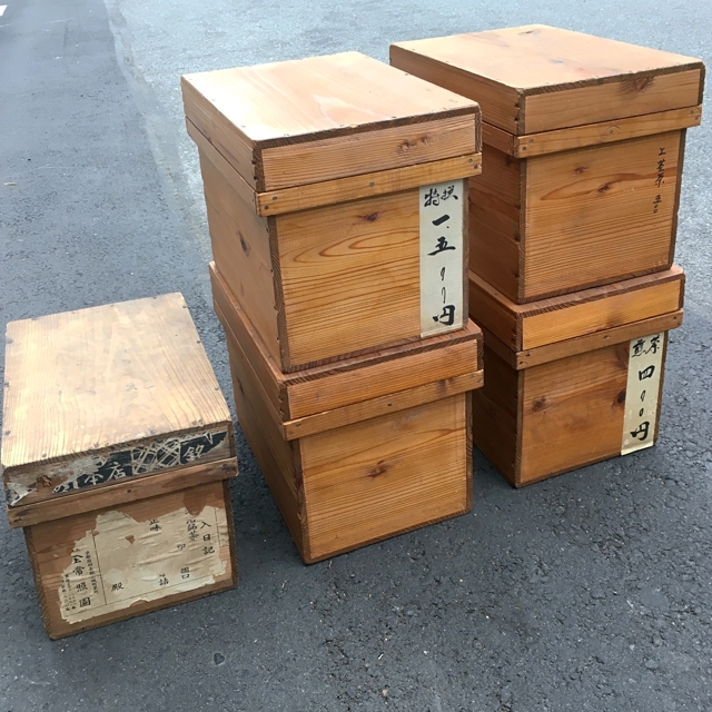 小振りな茶箱はこんな感じの物が10個ほど。内側は丁寧にトタンが張りこまれており状態も良いです。