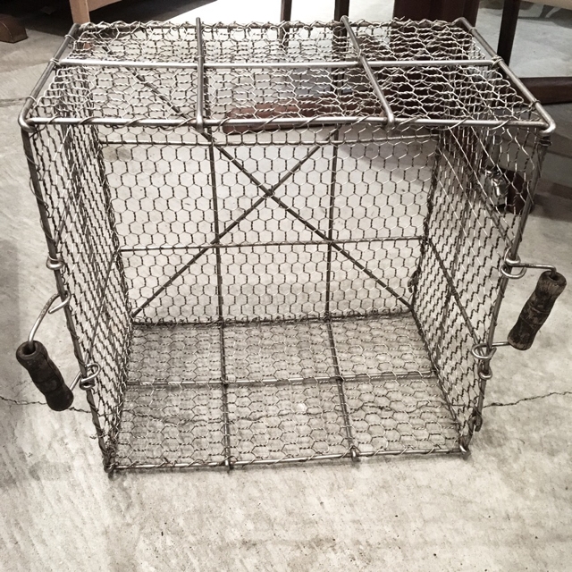 古手のステンレスのカゴ、何かの洗浄用だったのではないかと思います。給食用かも知れません。