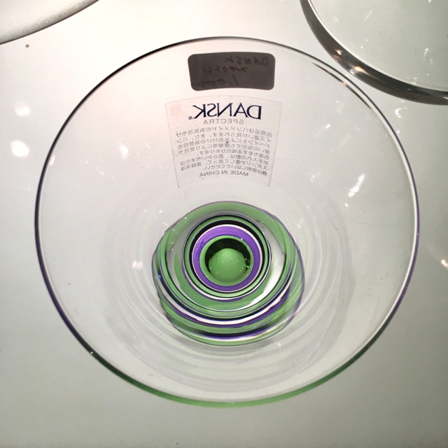 DANSKの色とレンズ効果を効果的に使ったシリーズ Spectra のカクテルグラス Φ90 h/96ミリ 色はグリーン&パープル 箱有未使用品です。800-