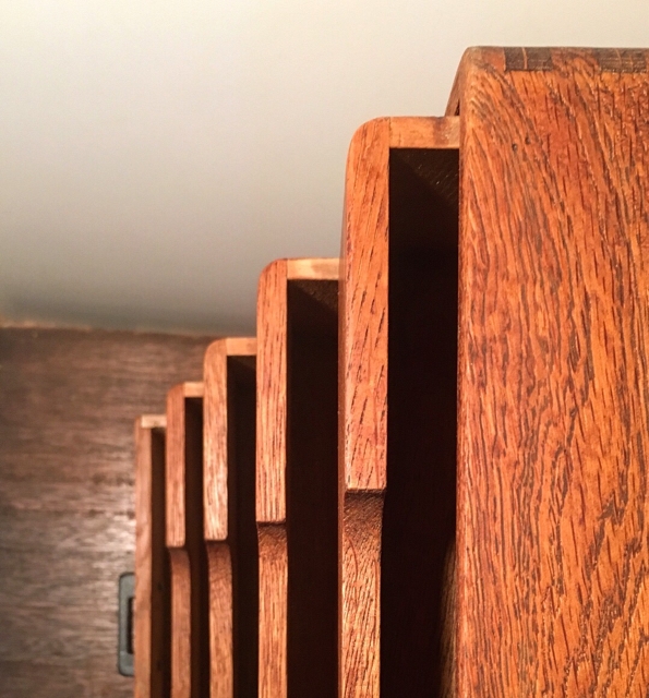 幅がぴったりの半端在庫の引き出しを両面遣い様に組み直し、木片で把手を両側に付けました。本体はサンディング後にオイル仕上げ。純正4杯はA4オッケー、追加箱はギリギリA4入りません。