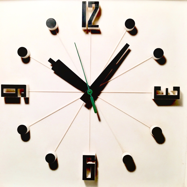 ナショナルの60’s当時はウルトラモダンだったでしょう、振り子掛け時計のクォーツへの改造オーダーを頂き着手。文字盤のみですが、凝った造りとポップなグラフィックはお判りいただけるかと思います。