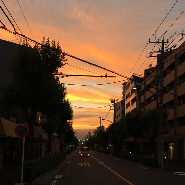 #夕焼け #空模様 #夕日 #夏至 #目黒本町5丁目交差点 #目黒本町 #平和通り商店街 #武蔵小山 #古道具 #古家具 #subtonez