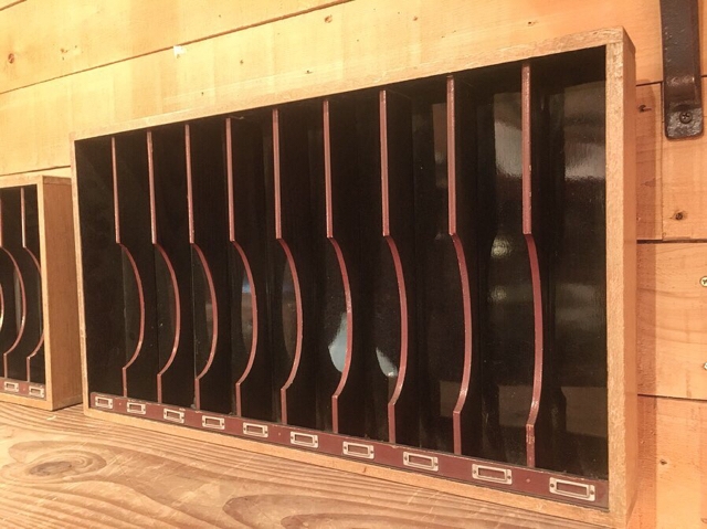 毛筆を陳列していたと思しき仕切り棚、または本来ベタ置きですのでトレー。
