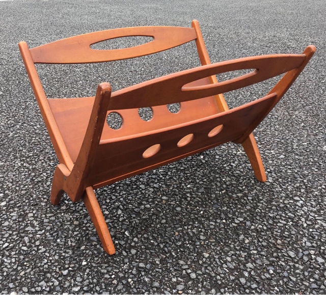70年代オールドカリモクのマガジンラックが入りました。可愛らしいレトロモダンさです。流石に少々ヘタリはありますが、総じて良い状態かと思います。綺麗にメンテナンスしてお出しします。