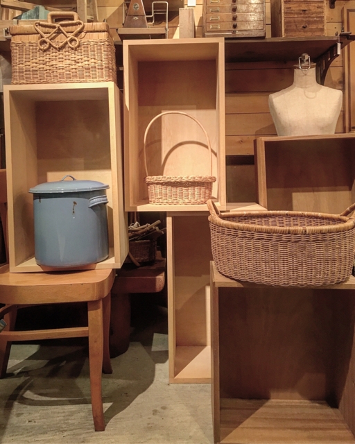 #今日の一角 #木の箱 #箱収納 #籐のかご #籐のバスケット #琺瑯保存容器 #古道具 #古家具 #武蔵小山 #目黒本町 #西小山 #26号線沿い #subtonez #サブトーンズ