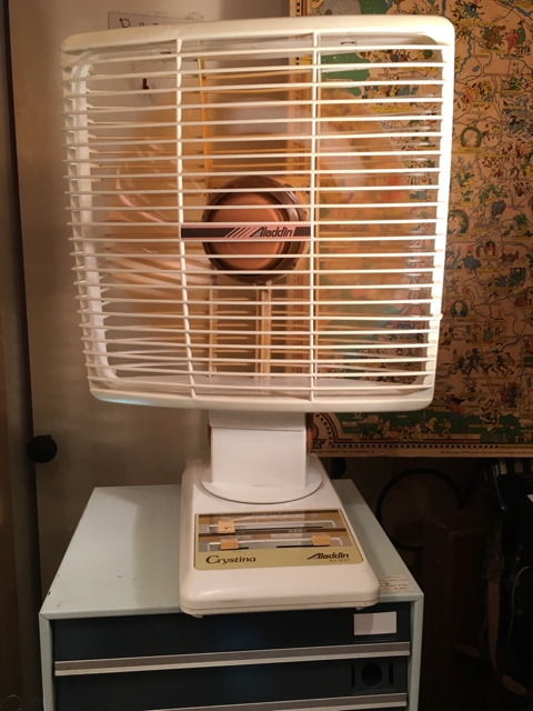 あのブルーフレイムのアラジンから出ていた扇風機 クリスチーナ Crystina 初めて見ました。日本の代理店が販売していた様で1982年製。