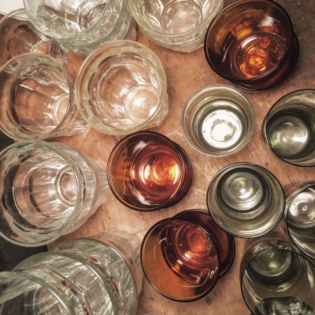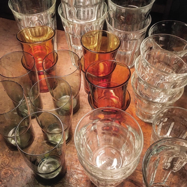 ヴィンテージのデュラレックス中心に普段使いのグラス類沢山整っています。ひとつ 300-~800-のあいだで色々と有ります。