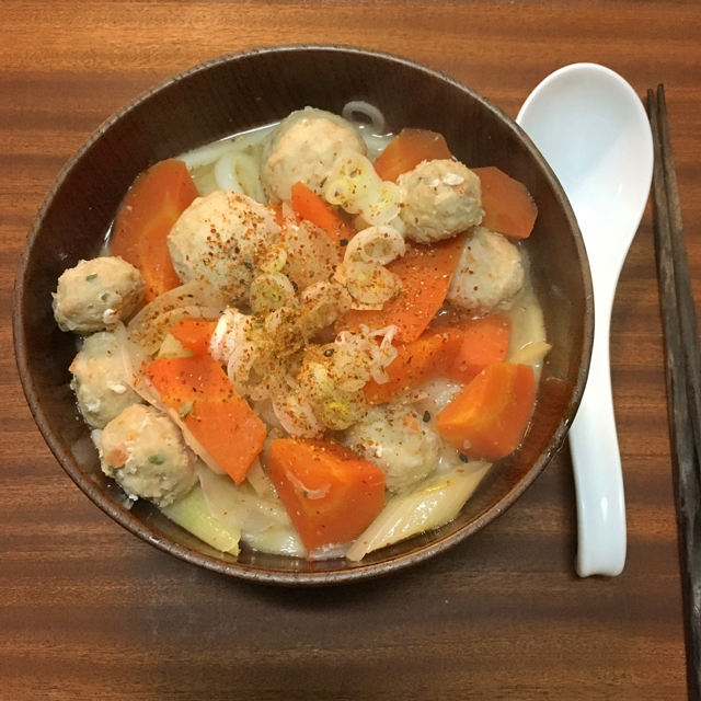 昨晩は意外と冷えたので庫内整理を兼ねて 鶏団子2種の生姜たっぷり粕汁うどん。最近似たような物ばっかり作りがち、寒いと特に。今晩は大根とキノコでも再投入しましょうか。