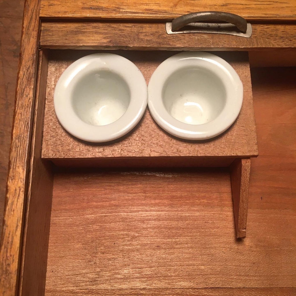 〈new !〉昭和初期辺り、蛇腹の筆入れ。小型の硯を納め毛筆を揃え携帯するもので、大抵あちこちに墨が染み真っ黒なコンディションの物が多いのですが、こちらはデッドストックなのか別用途だったのか、非常に綺麗です。内部の仕切り的なものは欠落があるかもしれません。蛇腹の動作もスムーズです、卓上の筆記具整理など如何でしょう。