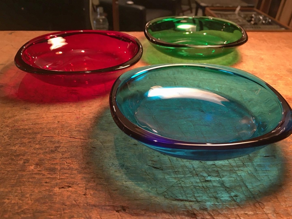 70’s 各務 / カガミクリスタル社 ハイカラープレート 残すは 青のみ。何となくクリスマスカラーです。120×120 高 30ミリ