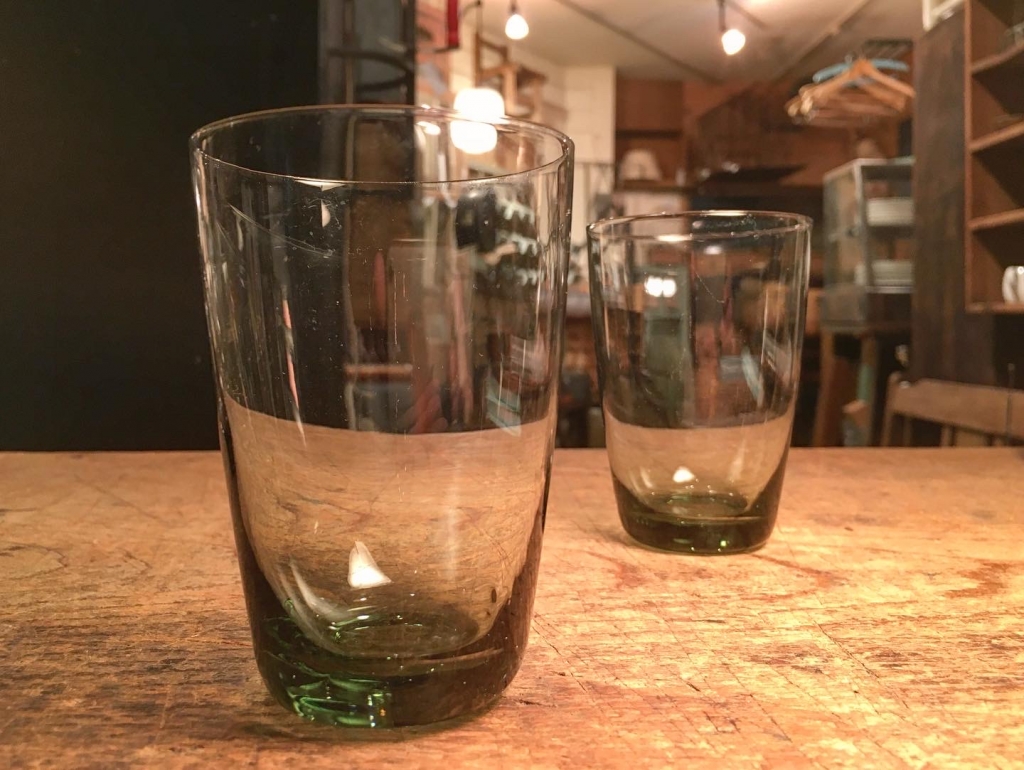 薄手の硝子と仄かなグリーンがシックです。高さ 92 口径 65ミリ  sold