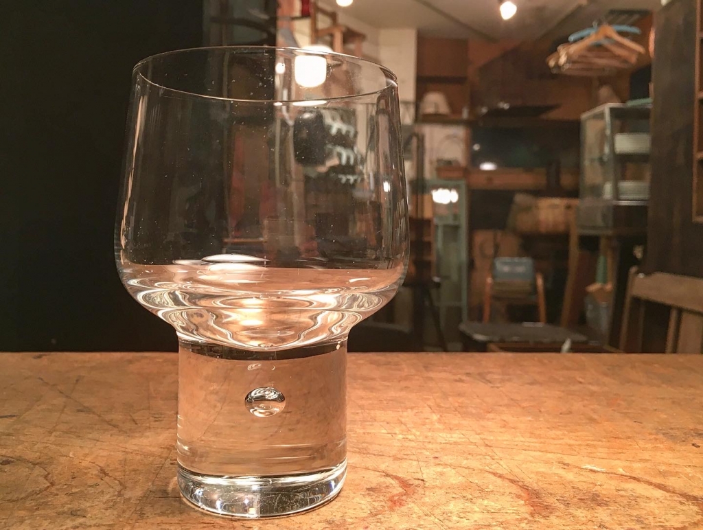 ラスト これまた不明なクリスタルのグラスがひとつ。ソリッドなベース部でどっしり重いです。北欧ガラスな匂いがしますが、さて。高 126 径 80ミリ sold