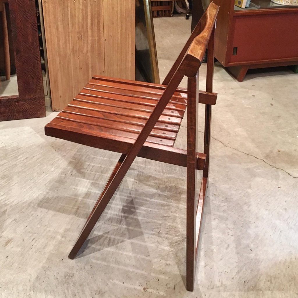 上質でモダンな折り畳み椅子 Trieste が複数脚再入荷。前回はご紹介前に完売してしまいましたが、今回の物は表面塗膜に傷ダメージが結構目立ちましたので全体的にオイルステインでメンテナンス致しました。