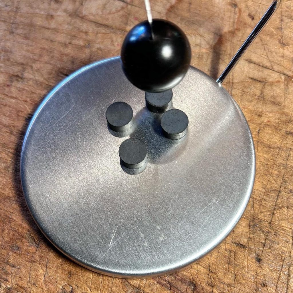 何となく80’s辺りなのかな、マグネットを上手いこと使った所謂キネティックオブジェの範疇でしょうプロダクト。