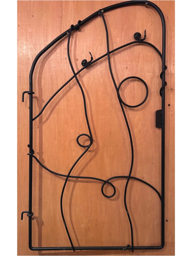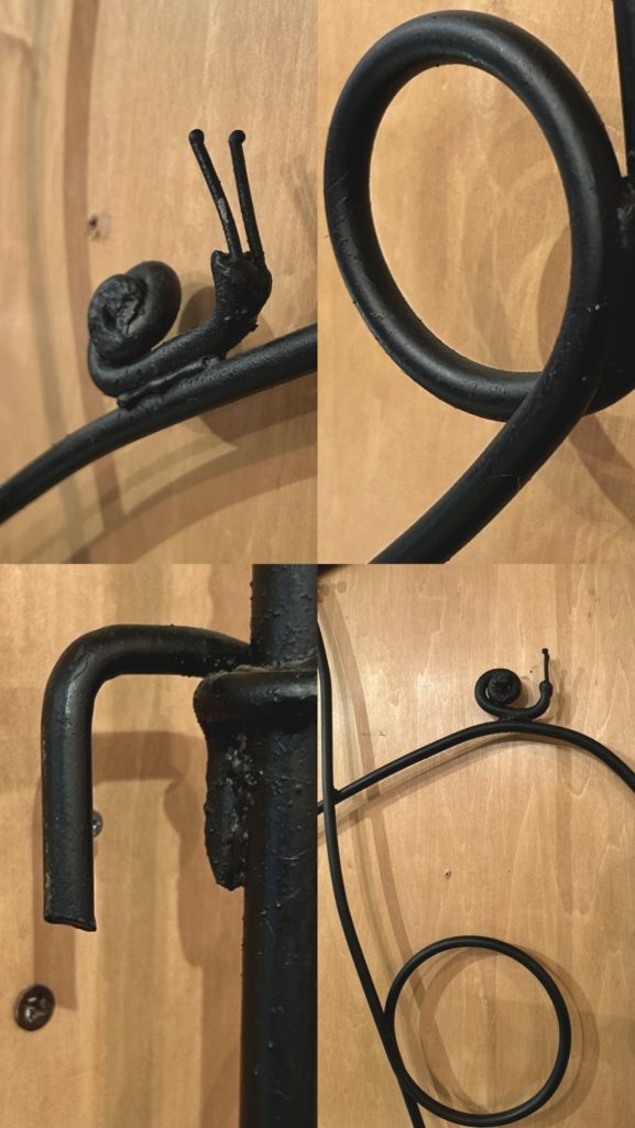 余り変化無さそうに見えるかもな一角ですが、ちょいちょい弄りまして、引っ張り出してきたカタツムリの鉄扉を再びのご紹介です。特注された物の一部で片側しか無く、錆がひどかったので油性の艶消し黒で再塗装してあります。