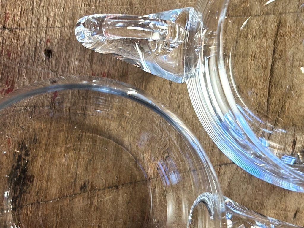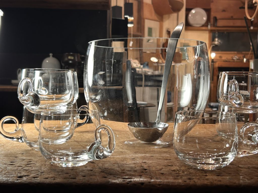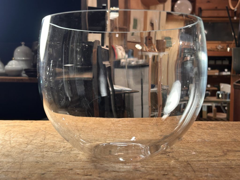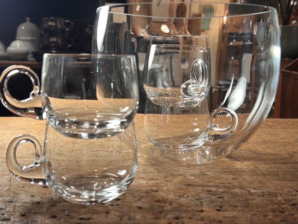 キンキンに冷やしたサングリアなんかが美味しそうな季節、こんなガラス器は如何でしょう。未使用デッドストックで出てきました、70’s後半頃 保谷ガラスのパンチボウルセットです。デカール等はございませんが、納まっていた箱へ上記のクレジット&書き込みがありました。ボウルの縁はシャープに磨きがかかっています、チップし易いのでご注意下さい。カップは耐熱かどうかのテストは致しておりません悪しからず。