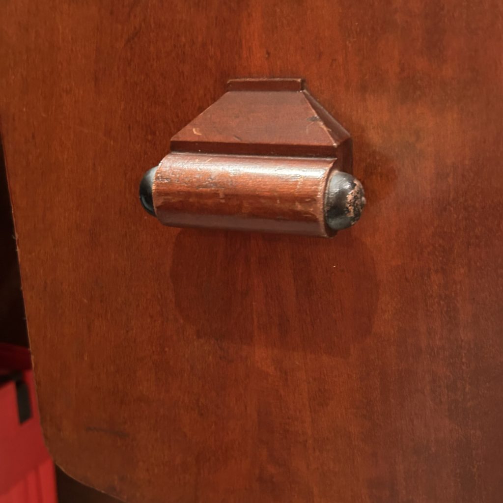 鞴 / フイゴは経年劣化により空気抜けしており、リード発音は確認可能ですが演奏は難しい状態です。最高音に2、3出ない鍵がありますがリードの埃詰まりの様に思います。膝の部分のスウェルというレバーが欠品していますが機構自体は生きてると思います。100歳のご老体ですので、あちこちガタは来てます。が、木材は詰まった堅い良い材ですし、虫食いも見当たらず致命的なダメージはない様に思います。ここから先のレストアは専門の方へ委ねて頂く、或いはこのままコレクションやディスプレイとして愛でて下さる方へ繋げたらと思います。
