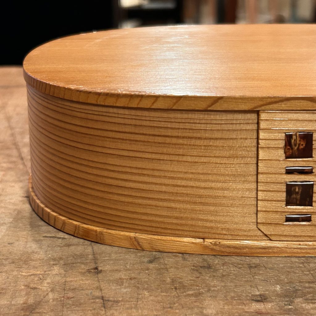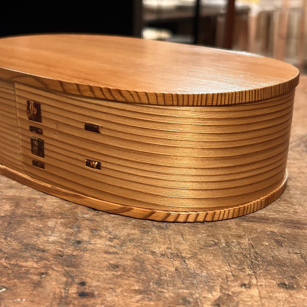 現在カミナリタイムの目黒本町サブトーンズ19時迄営業中。大館工芸社の曲げわっぱ小判弁当箱をどうぞ。