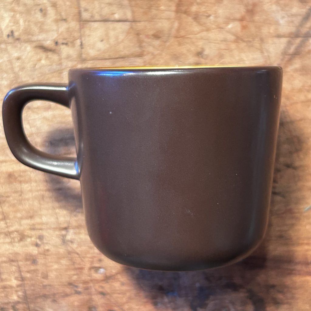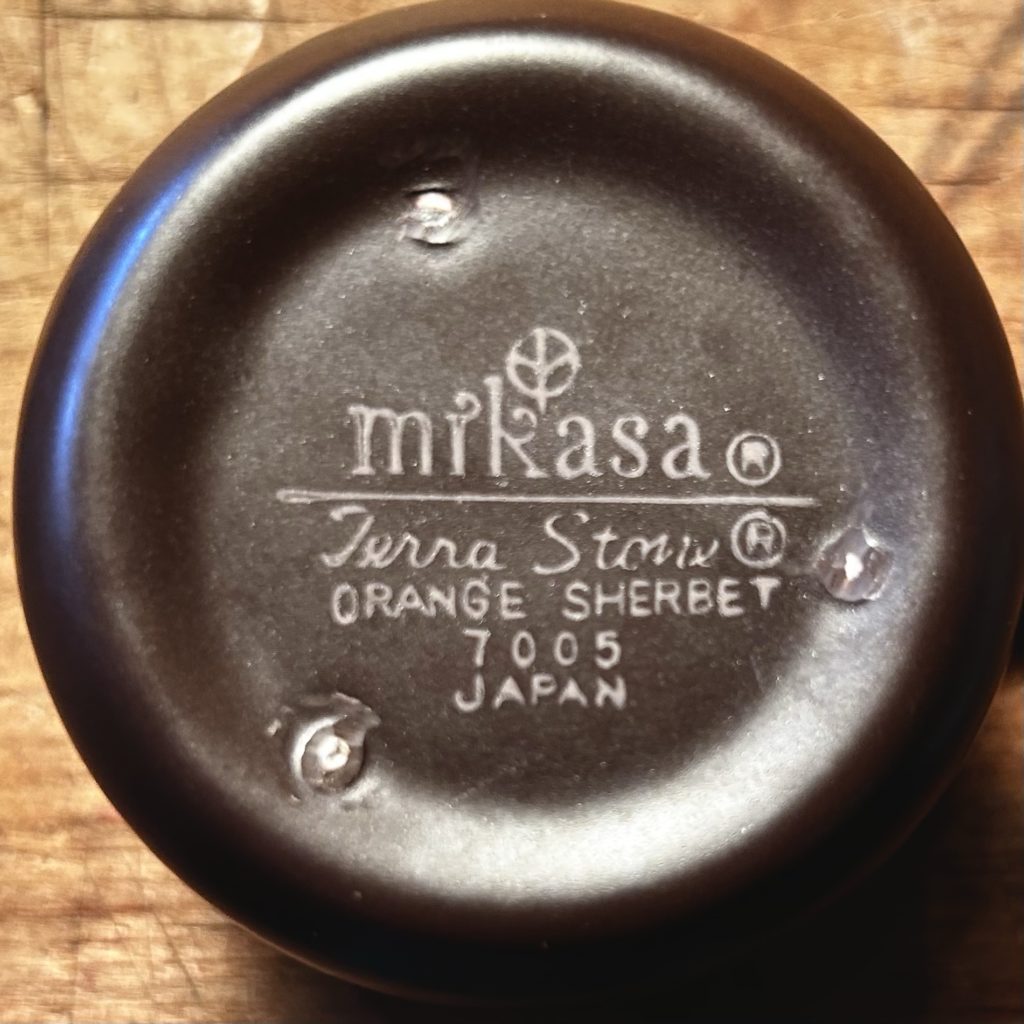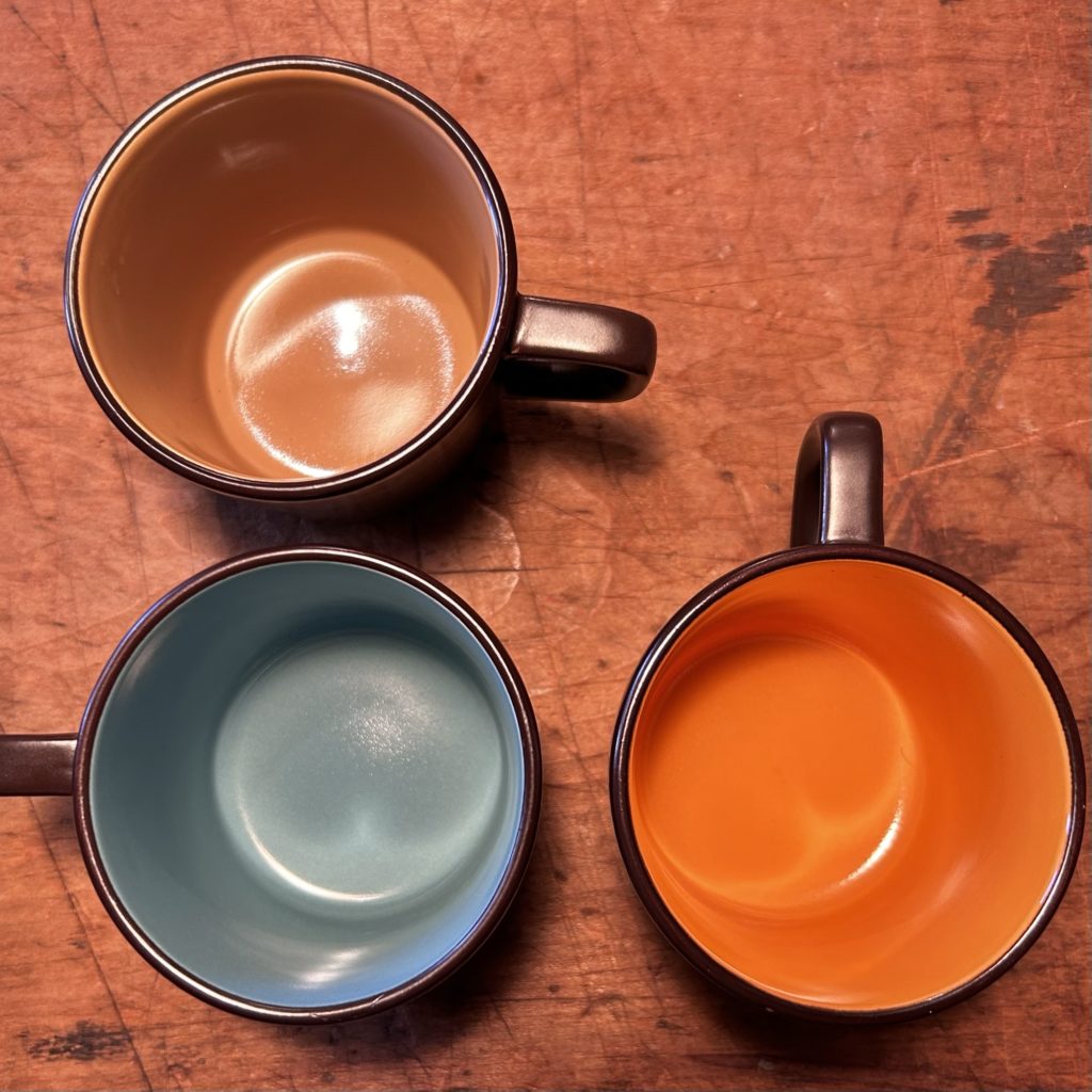 絶妙な中間色の配色にセンスを感じるマグカップは70’s頃のミカサ テラストーン、未使用品デッドストックです。店主的には3つセットで送り出したい所ですが、泣く泣くバラでお出しします。径 80 高 72 ひとつ1.800-(税込) です。青 オレンジ sold どうぞ宜しくお願いします。