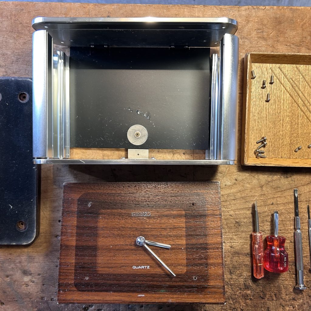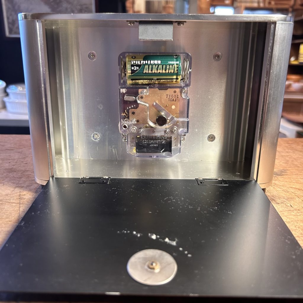 クリーニングの為一度分解しましたが アルミ押出形材 ヘアライン ローズウッド無垢材&突板など贅沢な造り。古い時計って腐食電池で錆サビなのがデフォルトななか、非常に綺麗なムーブメントです。スターター始動にコツが要りましたがきちんと動作しております。裏へ学位授与記念 1977 〜 とありますが、現状そのままにしています。消されたい方はその旨お伝え下さい善処致します。