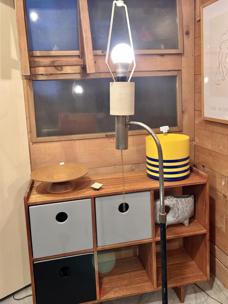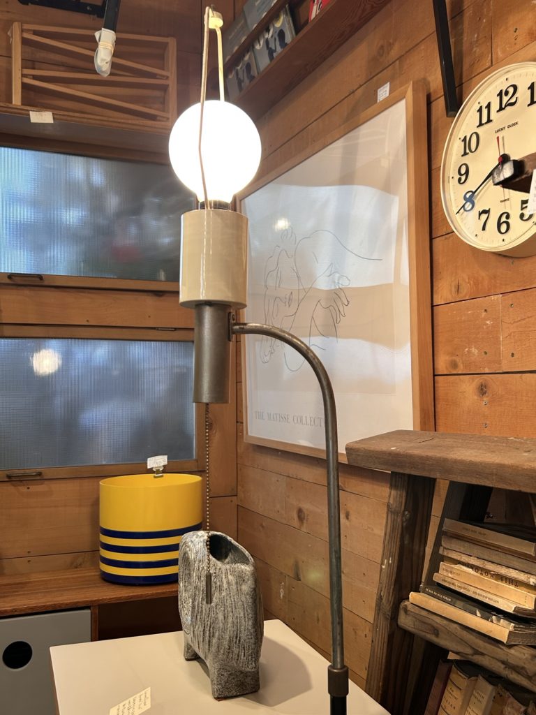 古手のフロアライト Toshiba と有ります。レトロ寄りではありますが曲げパイプと鉄材円柱遣いなどシンプルな無骨さに好感が持て、60’sのプロダクトらしく手造りのイナたさが感じられます。