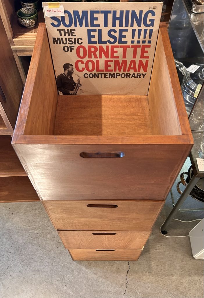 数十年前に誂えたのであろう整理箱、シナランバーコア材を上手いこと使って作られています。LPレコードがほぼジャストで収まります(上 或いは 前 は少々飛び出ます)