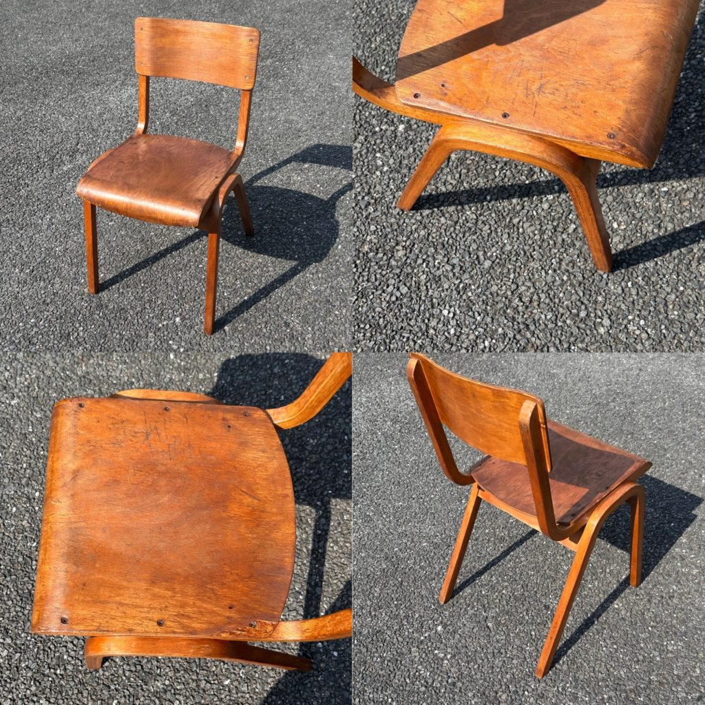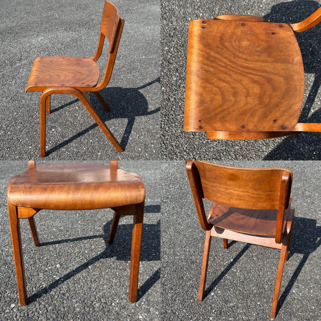 イギリスからと思われるプライウッド製が2脚、スタッキング出来ます。