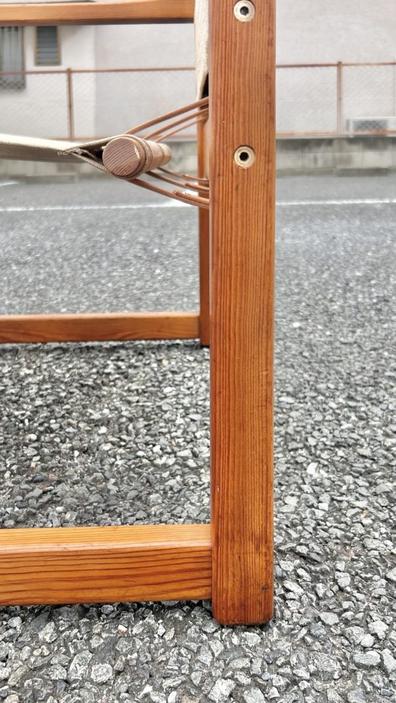 パイン材の躯体はファブリックとの見え方バランスを考え緩めにオイルで整えました。1箇所恐らく当時の製作時に補修したであろうパテ痕がございます(画像13)後で色合わせレタッチしたいと思います。