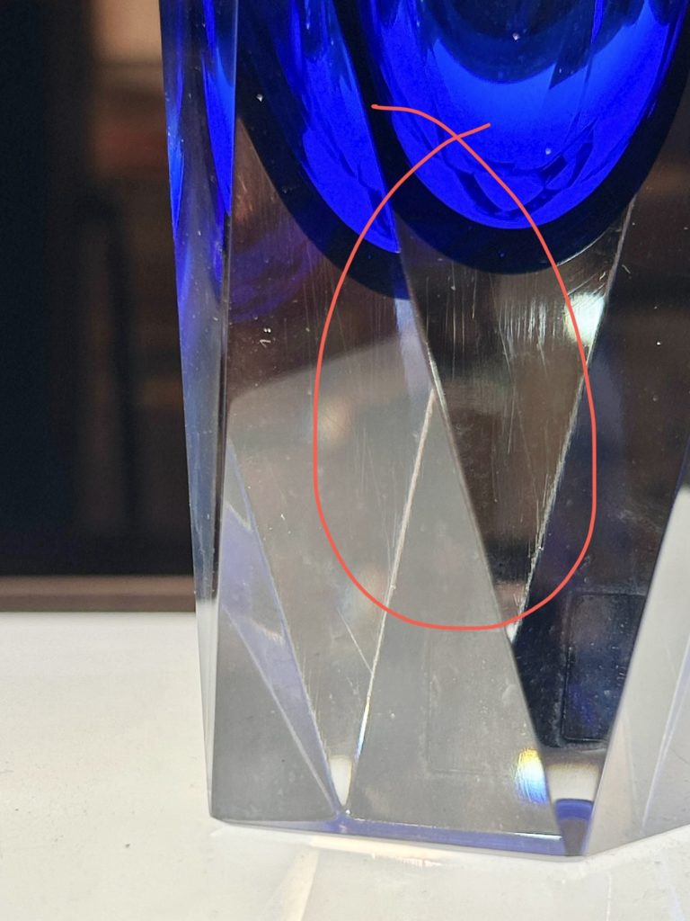 チップは見当たりませんでしたが、表面の僅かな白っぽい変質と極細かな傷がございます(画像 9~11)光の加減で判る程度ではありますがご留意下さい。