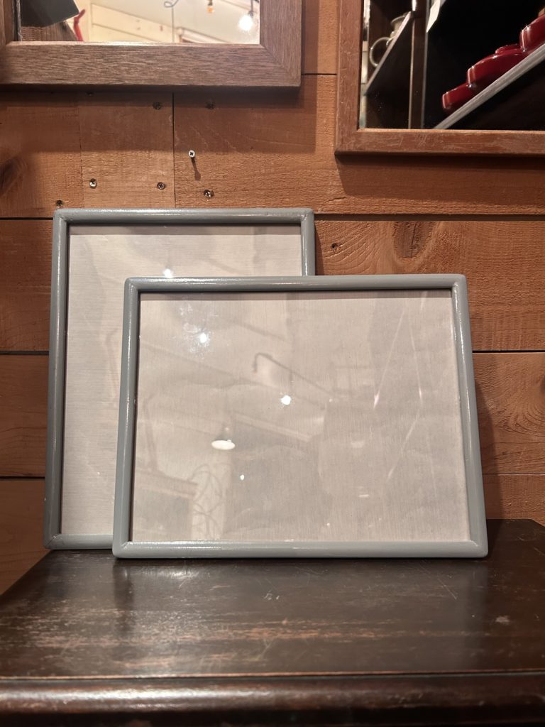 グレーペイントの60’s辺りの額。 僅かにペイント剥げ箇所も有りますが艶も残り比較的良コンディションです。縦横どちらでもいけますが、現状掛ける為の金具はございません。ご用意頂くか別途の作業にて対応致します。230×290ミリ 在庫 2 @3.000-(税込) 配送 80サイズ