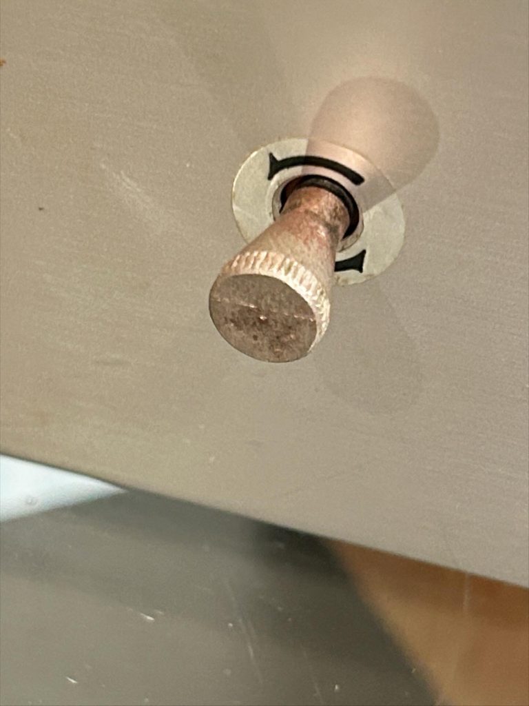 摘みの作成、残っていたオリジナルの方の雌ねじはM3の順ネジでしたが、欠品側はM3の逆ネジ、流石に逆ネジのタップは持っていませんので、モノタロウに注文。便利な世の中ではあります。掛け時計用の金属製調整摘みを加工し作りました。オリジナルとはちょっと違いますがご容赦ください。(10枚目)