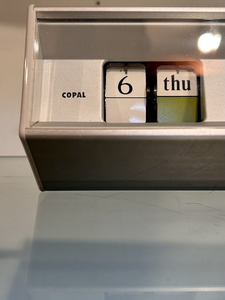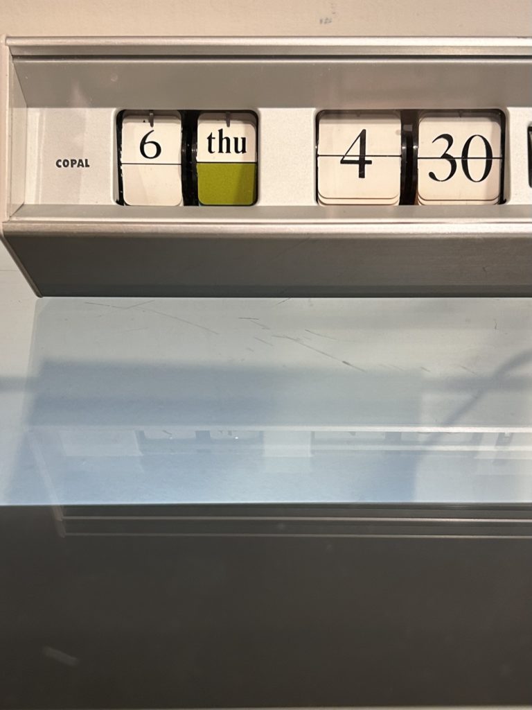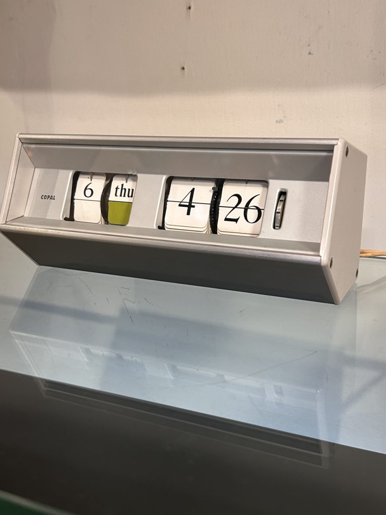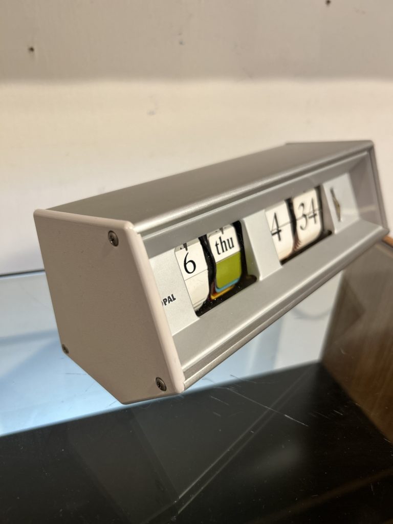 アルミ躯体の正面上 右に数ミリの傷がございます。ネオン灯は現状点灯しています。唯一色があるカレンダーの配色がまた素晴らしいです。